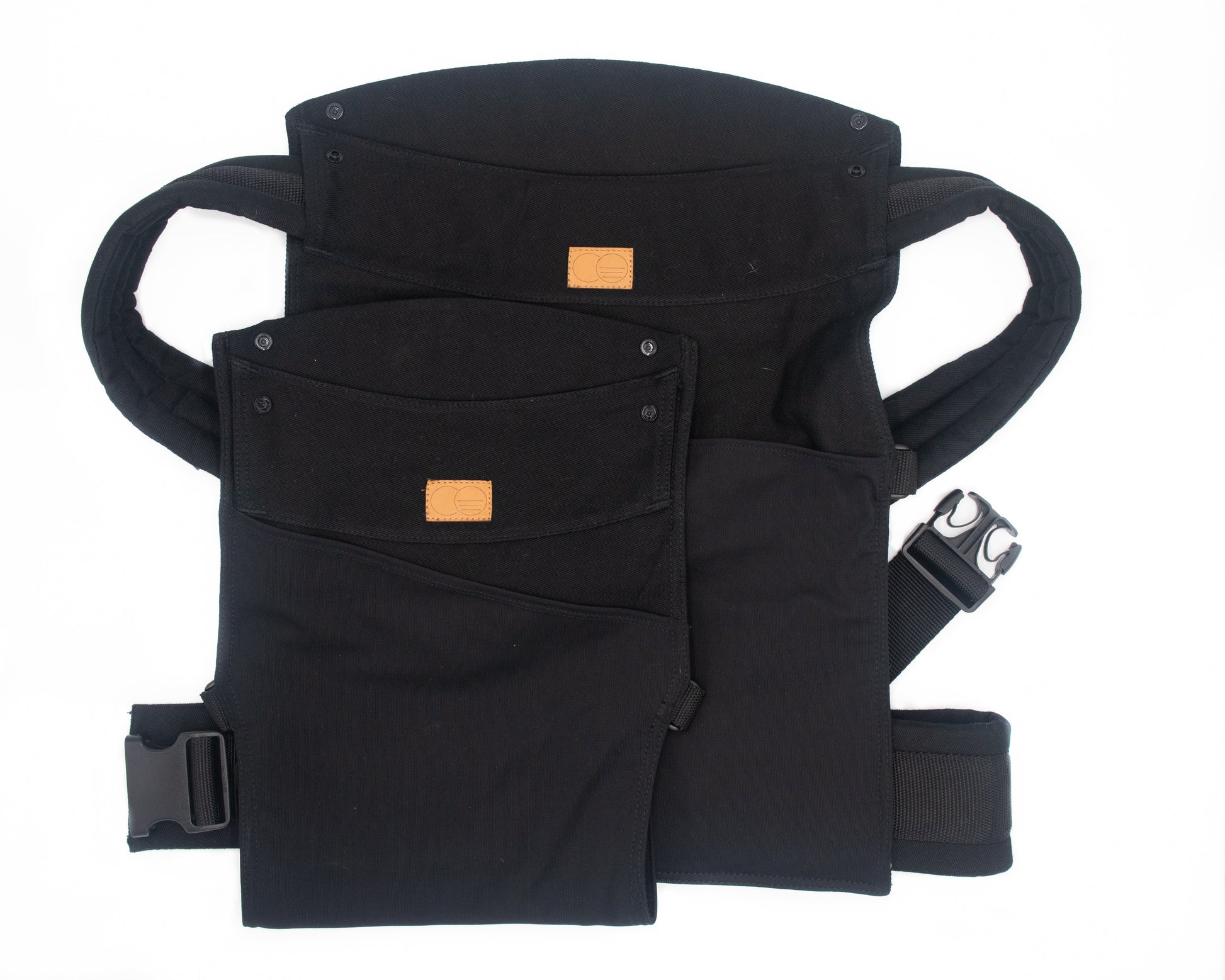The CO Carrier body pieces are made of cotton canvas with a super-sized nylon mesh pocket. The straps include nylon mesh webbing for ultimate adjustability, and secure with phthalate-free plastic buckles.